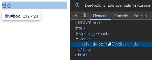 이처럼 box 태그를 새로운 변수 box에 참조한 다음 style메서드를 사용하면