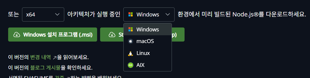 Windows 설치 프로그램 (.msi)를 선택해서 다운로드 해준다.