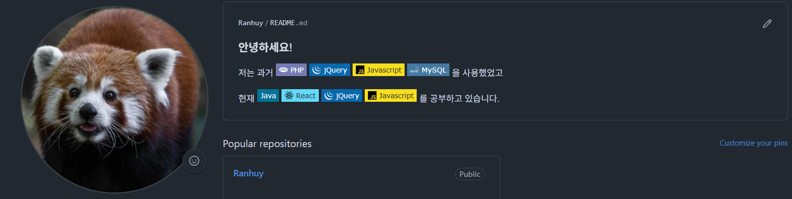 아직은 조촐하지만 차차 채워나가면 멋진 깃허브 프로필이 되겠죠?