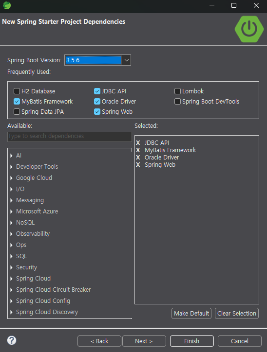 그 외에도 JDBC, MyBatis, Connection Pool, Oracle 라이브러리를 일일이 추가해줘야 했습니다.
