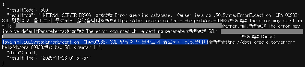 제가 넘긴 order_sql 파라미터는 문자열로 인식되어 최종적으로 아래와 같은 쿼리가 실행된 것입니다.