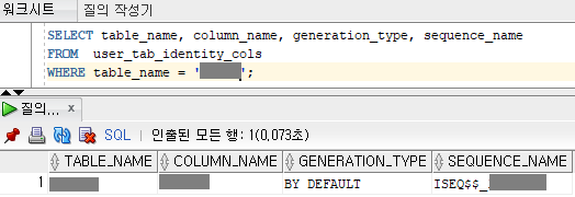 이 경우 아래 쿼리를 사용하면 원하는 테이블의 기본키 시퀀스를 확인할 수 있습니다.