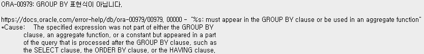 하지만 오라클은 group by 규칙을 꼼꼼히 따지므로