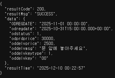 ODREGDATE가 결과적으로 odregdate가 되면서 API의 모든 필드명은 소문자 스타일로 통일됩니다.😨