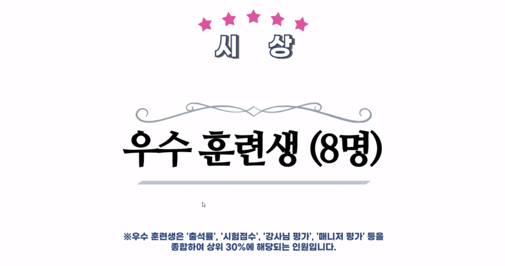 그래도 열심히 한 덕분인지 쑥쓰럽지만 우수수료생에도 뽑히고... 진짜 뜻 깊은 시간이었어요...!
